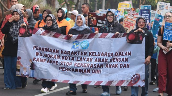 Pemerintah Kota (Pemkot) Surabaya bersama Tim Penggerak (TP) PKK menggelar kampanye stop perkawinan anak dan kekerasan terhadap anak. Kegiatan tersebut digelar bertepatan dengan Car Free Day (CFD) di Jalan Darmo, Taman Bungkul, Surabaya Ahad (27/7).