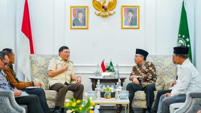 Pengurus Besar Nahdlatul Ulama (PBNU) dikunjungi Menteri Pertahanan RI Sjafrie Sjamsoeddin di Gedung PBNU, Jalan Kramat Raya 164, Jakarta, pada Jumat (1/8/2025).