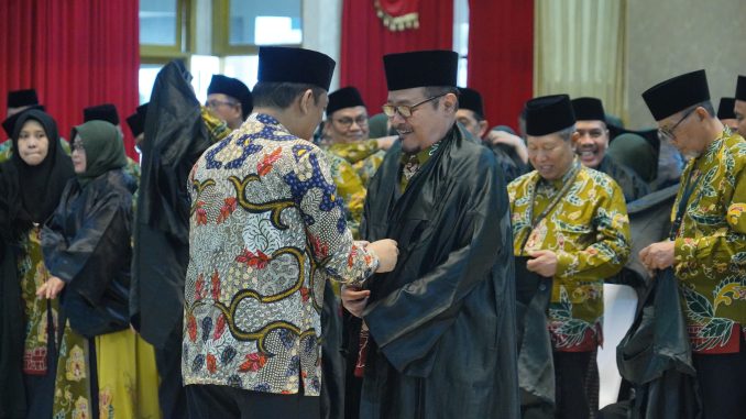 130 dewan hakim yang dilantik terdiri dari dewan pengawas, pimpinan dewan hakim, majelis hakim, panitera MTQ XXXI Provinsi Jawa Timur Tahun 2025.